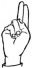 На ћирилици написано ВУКОСЛАВ БАЧАНИН састоји се из 15 слова [?]. Исписано ћириличном једноручном азбуком за глувонеме: